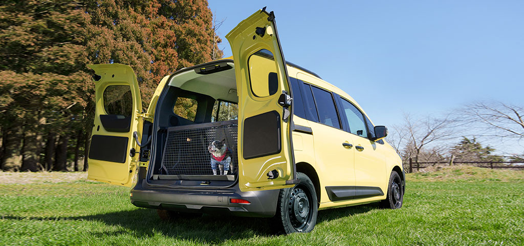 ペットカートや大きなケージも楽に積み込めるダブルバックドア。開放的な両側スライドドアに大型犬もゆった...