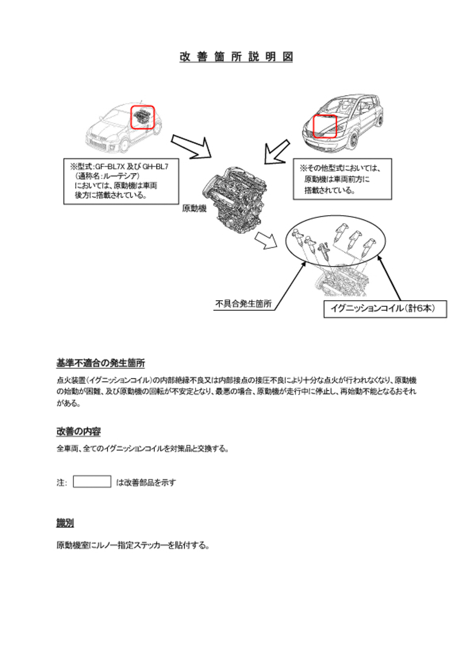 改善措置の内容 | 全車両、全てのイグニッションコイルを対策品と交換する。 |