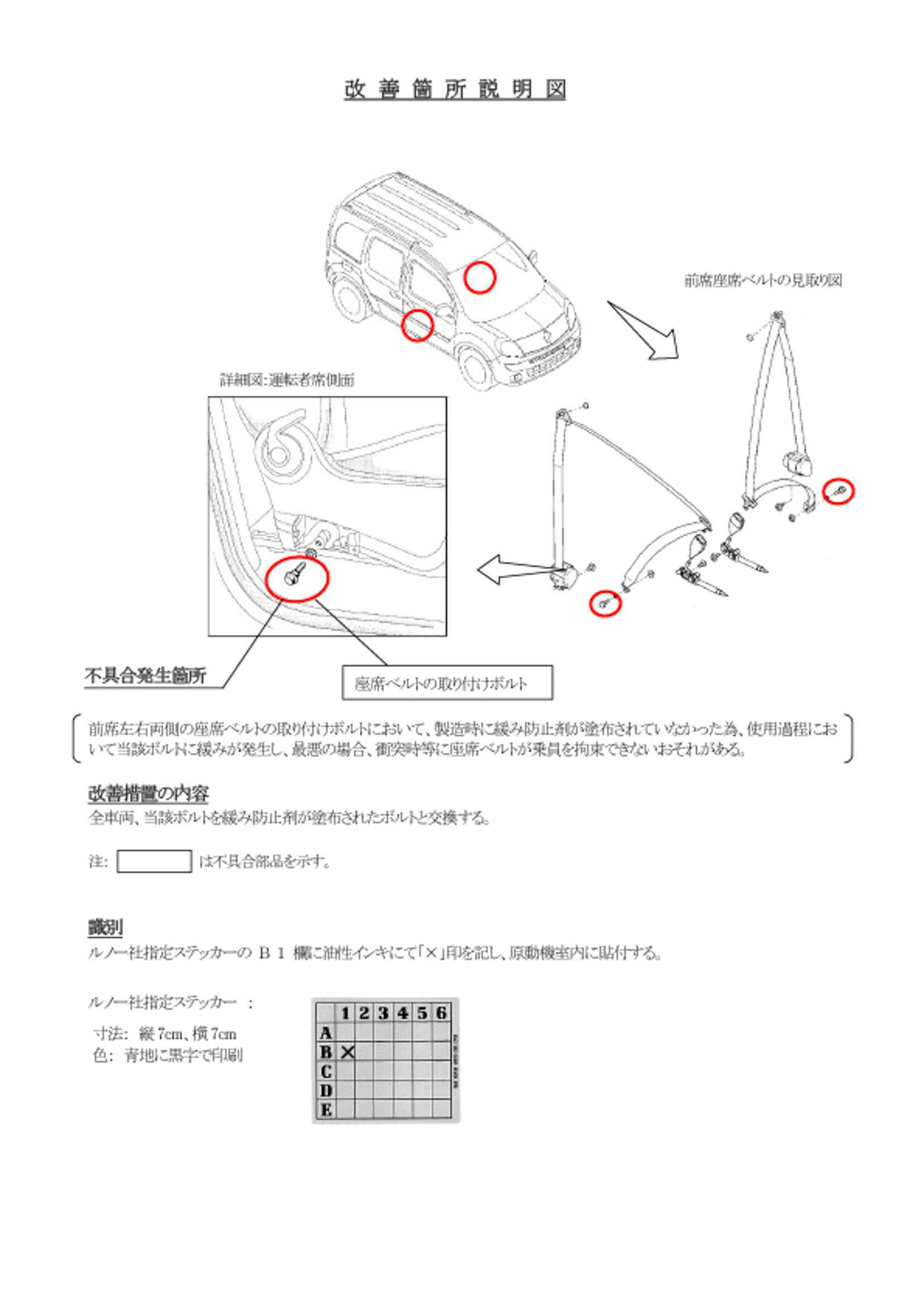 不具合の部位(部品名) | 座席ベルト(取り付けボルト) |