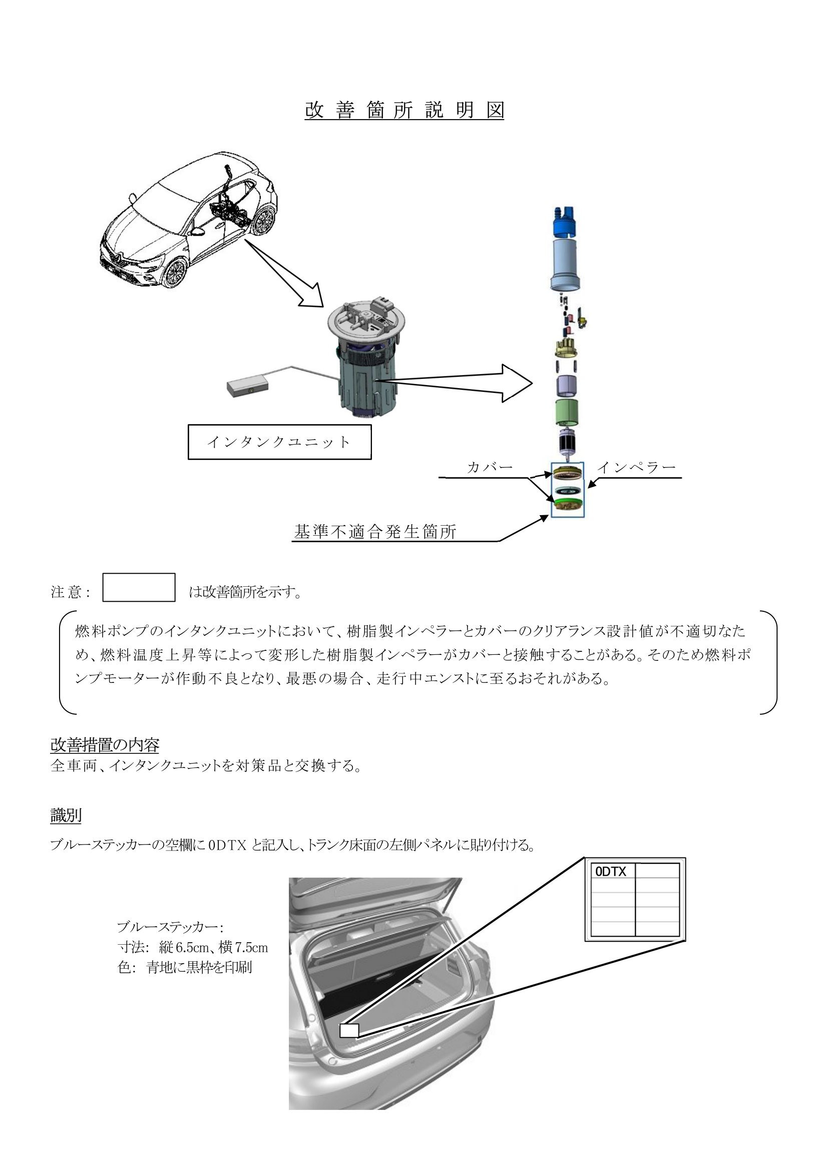 改善措置の内容 | 全車両、インタンクユニットを対策品と交換します。 |