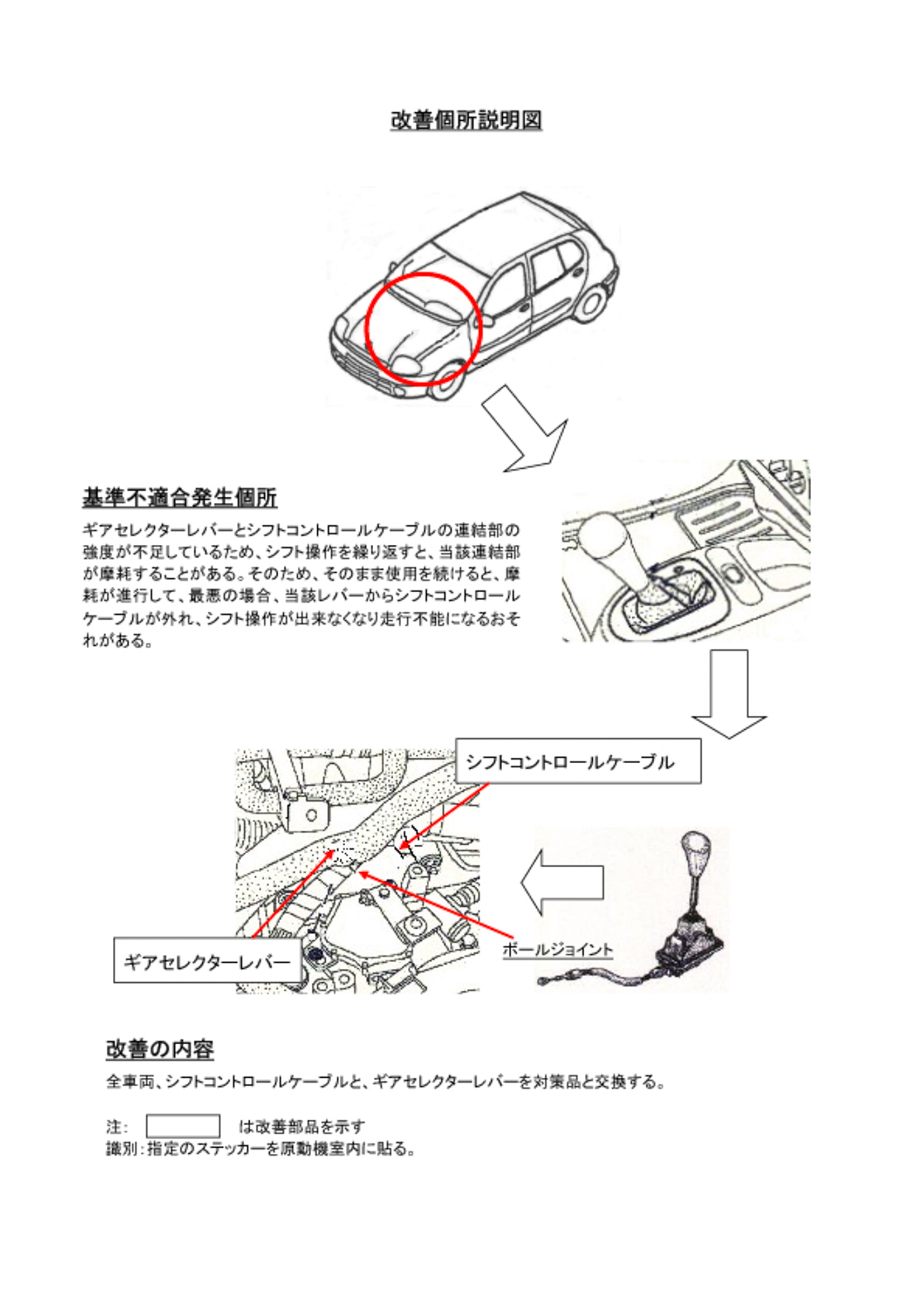 改善措置の内容 | 全車両、ギアセレクターレバーとシフトコントロールケーブルを対策品と交換する。 | |||||