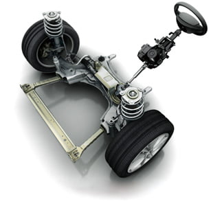 マクファーソンフロントサスぺンションを支持するサブフレームは、直径62mm の2 本の円筒状のリンクによってサイドメンバーに連結。横方向の剛性を高め、ステアリングの正確性の向上に貢献する。また、ステアリングは、操舵に対する車両応答性が高く、慣性的な動きを軽減するセッティングを施した。